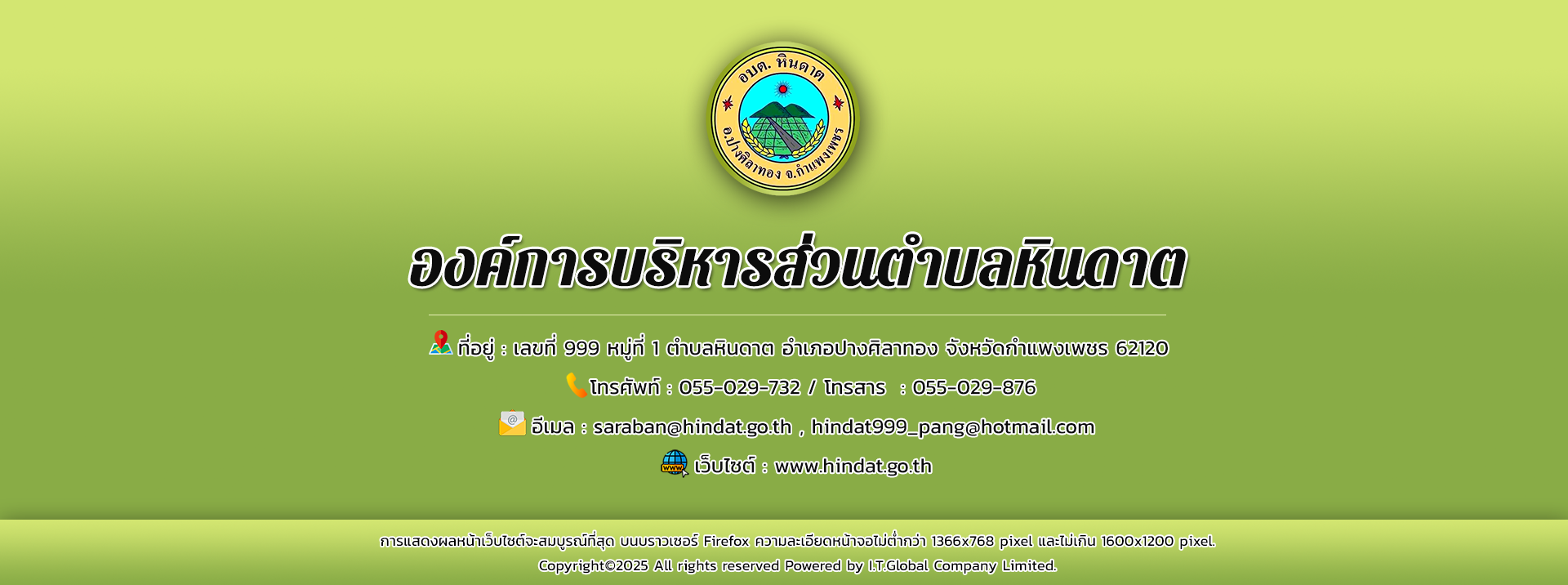 แผนการจัดซื้อจัดจ้าง ข้อบัญญัติงบประมาณรายจ่ายประจำปีงบประมาณ พ.ศ. 2569 กองคลัง องค์การบริหารส่วนตำบลหินดาต อำเภอปางศิลาทอง จังหวัดกำแพงเพชร